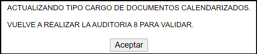 - Se selecciona el tipo de auditoria 8 y se ejecuta el proceso.